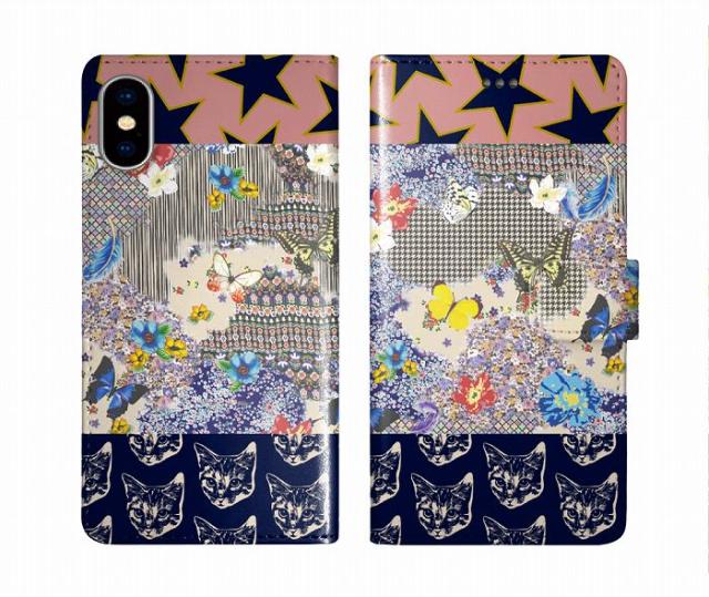 スカラー scolar AQUOS wish3 SH-53D/A302SH ケース 手帳型 アクオス AQUOS SH-53E/SHG14 SH-54B SH-53A SH-41A スマホケース スマホカバー 手帳 全機種対応 ネコ 星 チョウとお花の コラージュ ダイアリー