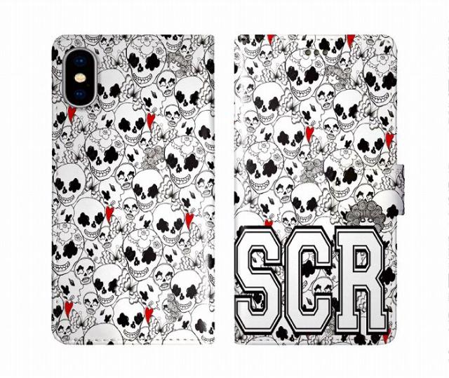 スカラー scolar AQUOS wish3 SH-53D/A302SH ケース 手帳型 アクオス AQUOS SH-53E/SHG14 SH-54B SH-53A SH-41A スマホケース スマホカバー 手帳 全機種対応 スカル大集合 ドクロ ハート ホワイト ロゴ 可愛い