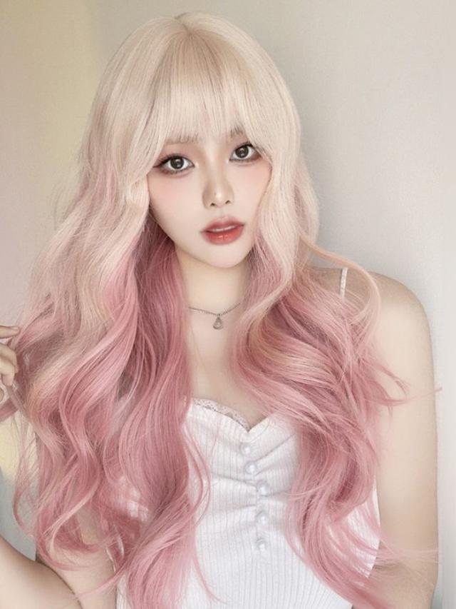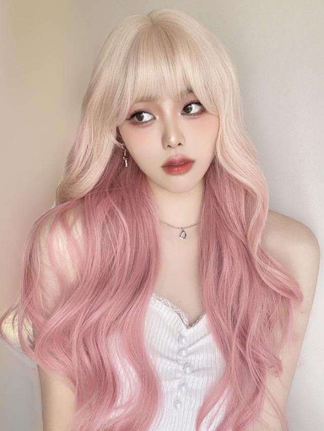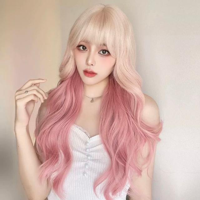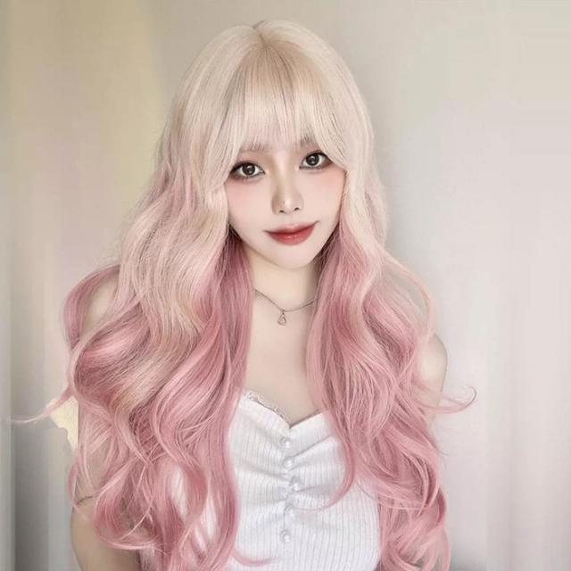 ウィッグ フルウィッグ 長髪 グリーン ゴールド ピンク ロング 巻き髪 ロングウィッグ ぱっつん前髪 前髪あり ハロウィン 演劇 舞台 dp086jccyxq