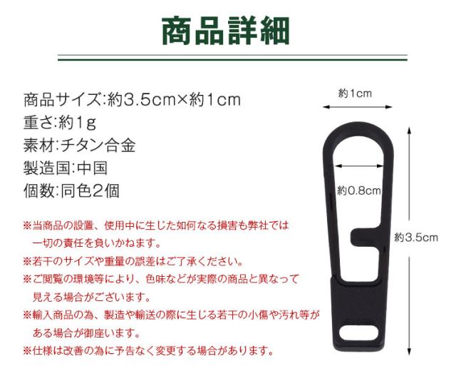 チタン ジッパープル 35mm 軽量 耐久性 ファスナー ジッパー パーツ 引き手バッグ 付け替え 錆びにくい チタン合金製 シンプル 修理 交換 PR-TITANHIKI【メール便 送料無料】