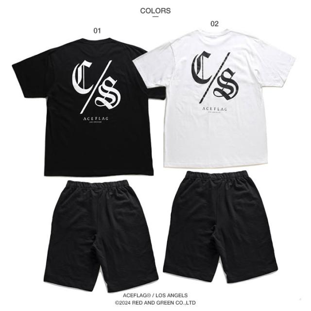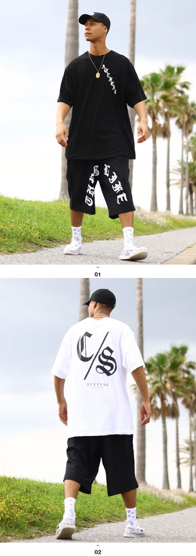 【43%OFF】ACE FLAG 上下セット 半袖 ブランド Tシャツ ハーフパンツ メンズ 春夏用 黒 白 大きいサイズ エースフラッグ セットアップ ゆったり スウェット C/S コンサフォス CS ビッグシルエット b系 ヒップホップ ストリート系 ハイ AF-SE-TS-145