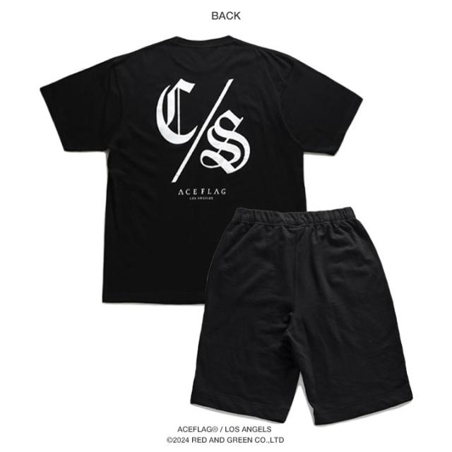 神のご加護を意味する「C/S」ロゴをドロップした、Tシャツとスウェットハーフパンツの上下セット。