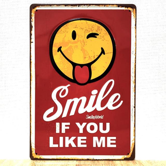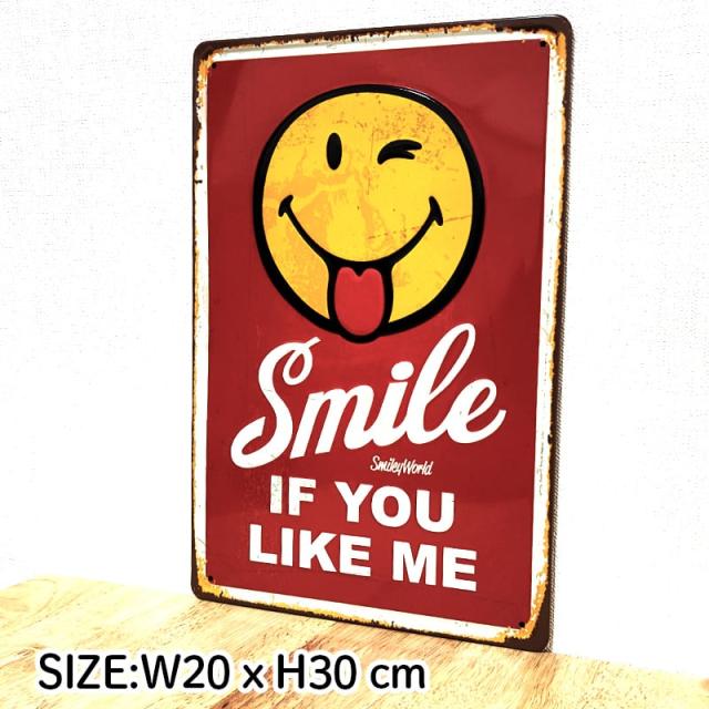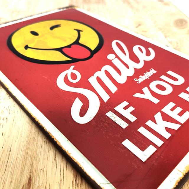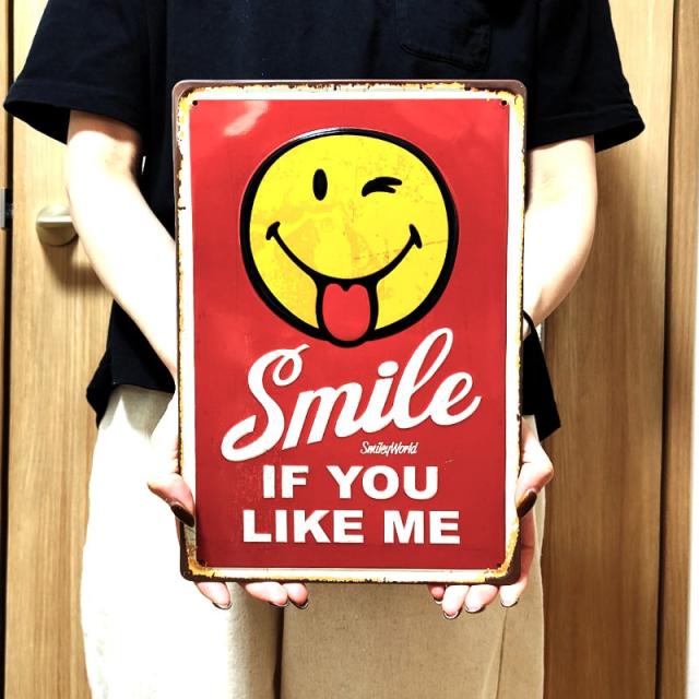 ブリキ看板 スマイル メタルプレート レッド かわいい Smile ウィンク アンティーク レトロ アメリカン 雑貨 ポップ ビンテージ