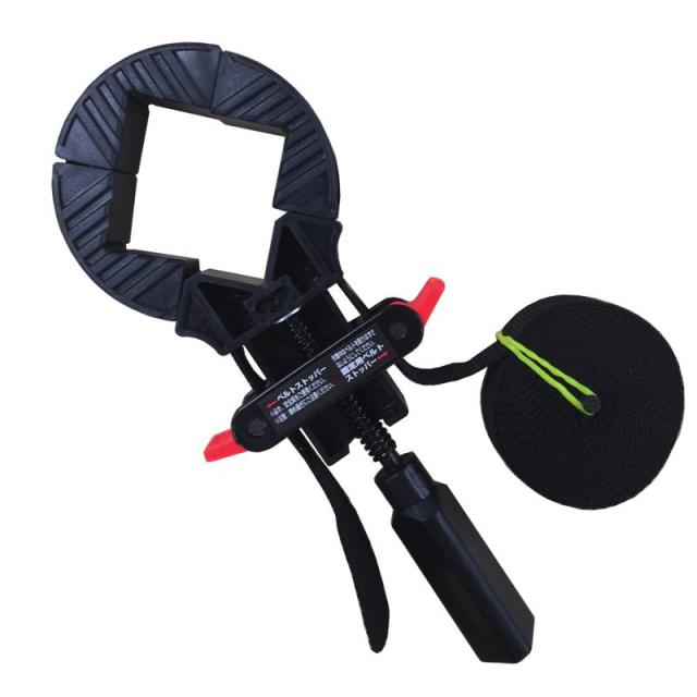 ベルトタイプだから、いろいろな形状(四角・三角・丸など)の木工製品作りに対応でき、簡単な操作でしっかりと締め付けのできる便利なクランプです。