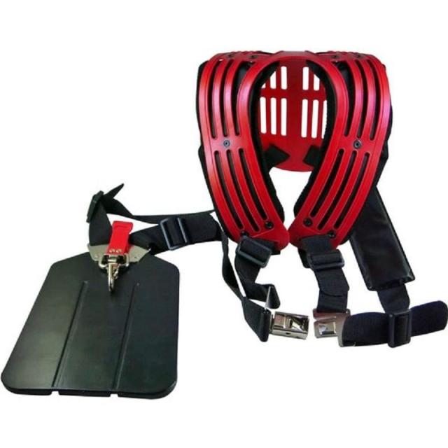 刈払機の重量、振動を両肩に幅広く巧みに分散し、疲労感軽減を考えた設計です。