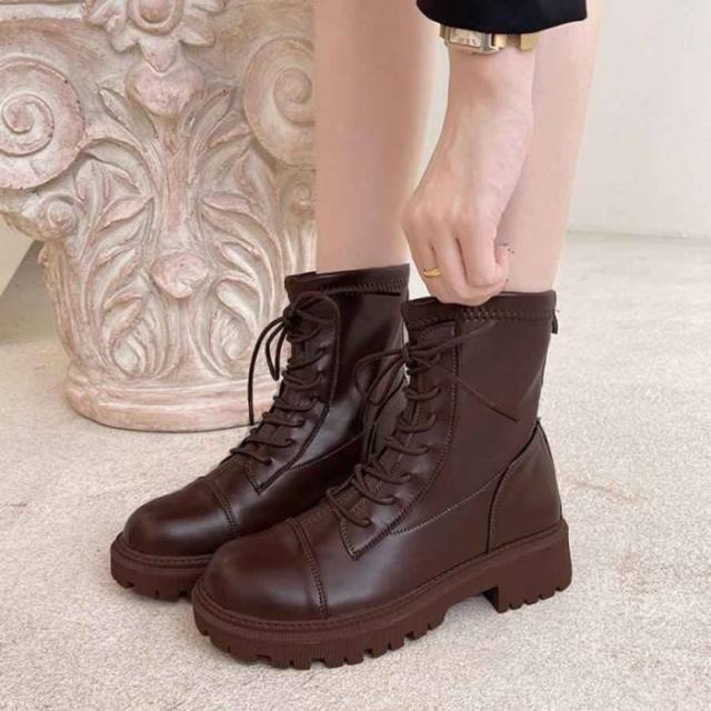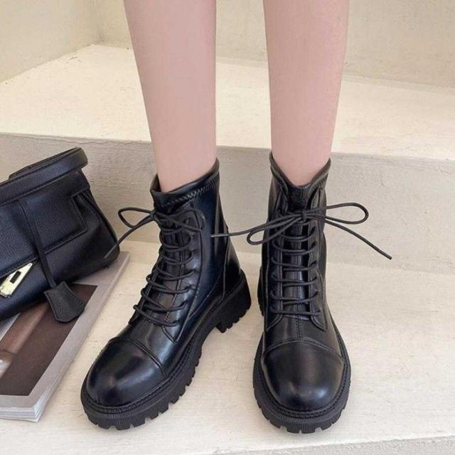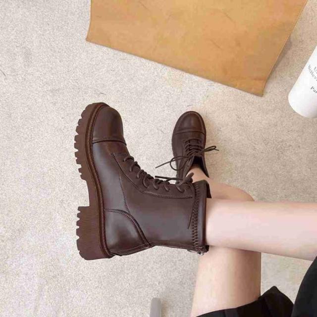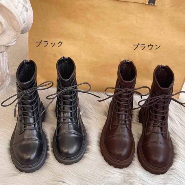 厚底ブーツ 韓国 バックファスナー 靴 ワークブーツ 秋冬 ローヒール 美脚 歩きやすい 通勤 通学 履きやすいくつ