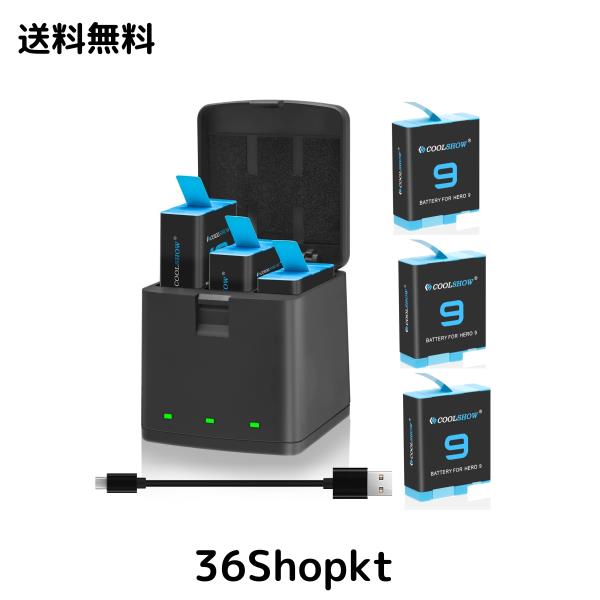 COOLSHOW GoPro Hero 9/Hero 10/Hero 11 バッテリー 3*1800mAh 交換 GoPro Hero 9/Hero 10/Hero 11バッテリー充電器 収納ボックス式3ポー