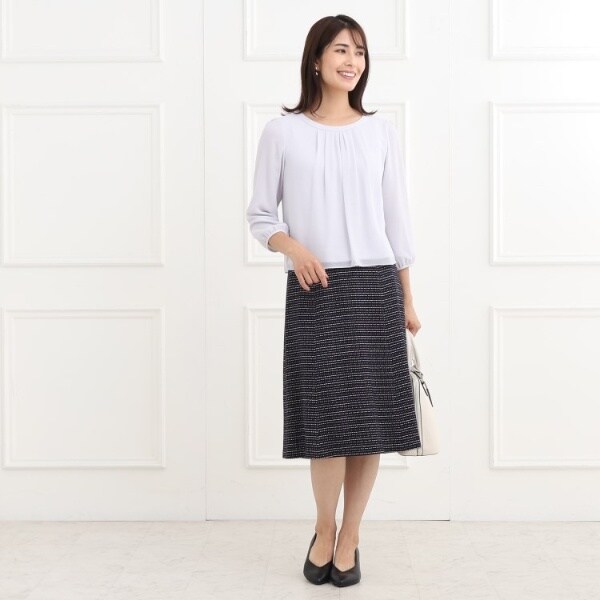 ツイードジャケットとセットアップでお召しいただけ、華やかさときちんと感を兼ね備えたタイトスカート。
