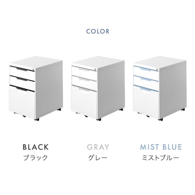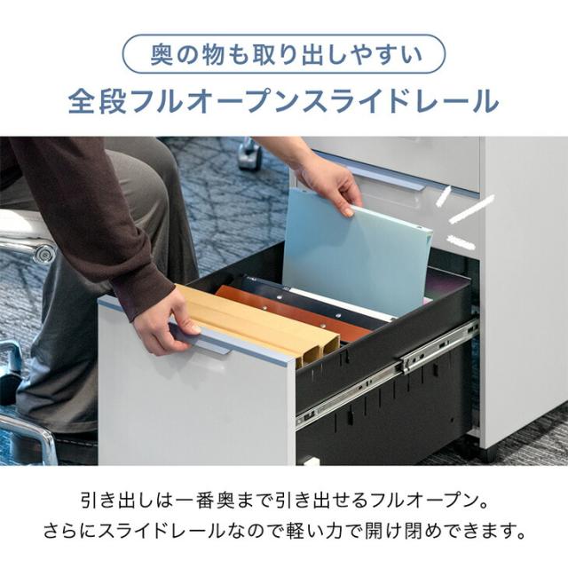 完成品 デスクワゴン 3段 キャスター付き 鍵付き フルオープン 大容量 サイドワゴン オフィスワゴン 収納ワゴン スリム 引き出し オフィス ブラック グレー ホワイト ブルー おしゃれ