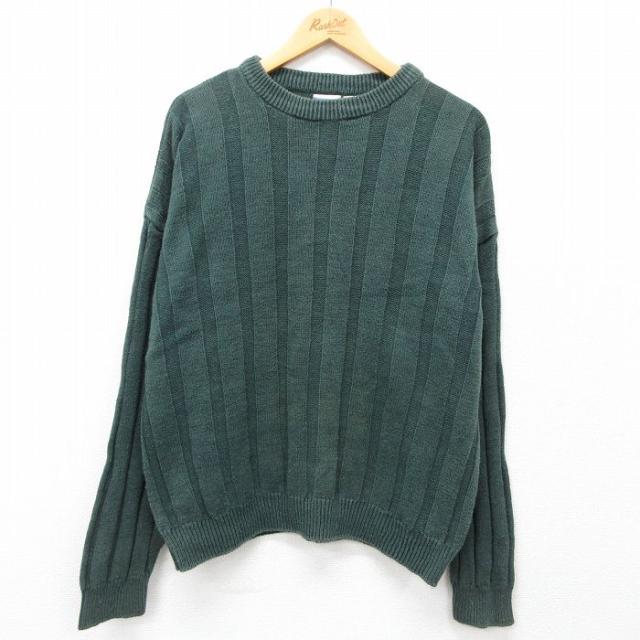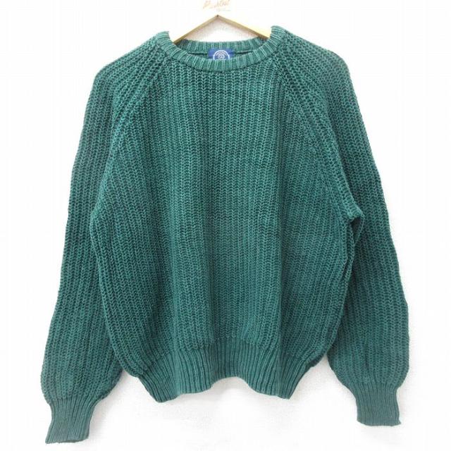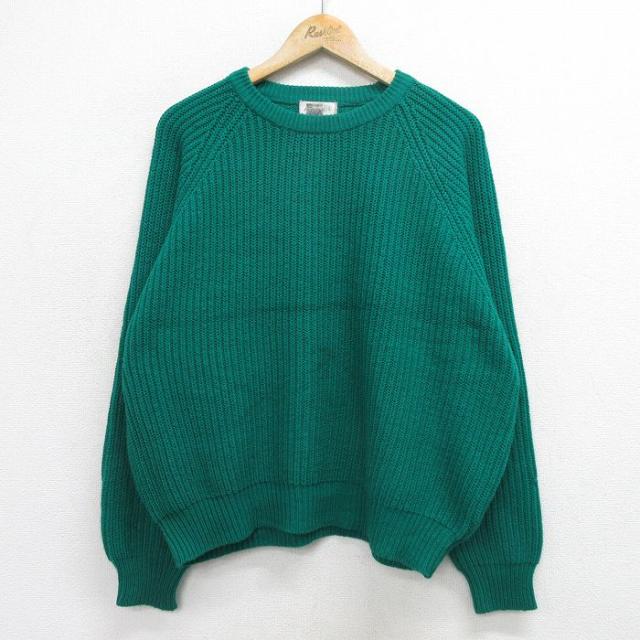 古着 アメリカンイーグル American Eagle 長袖 セーター メンズ 90年代 90s 無地 大きいサイズ クルーネック 緑 グリーン XLサ 中古 古着