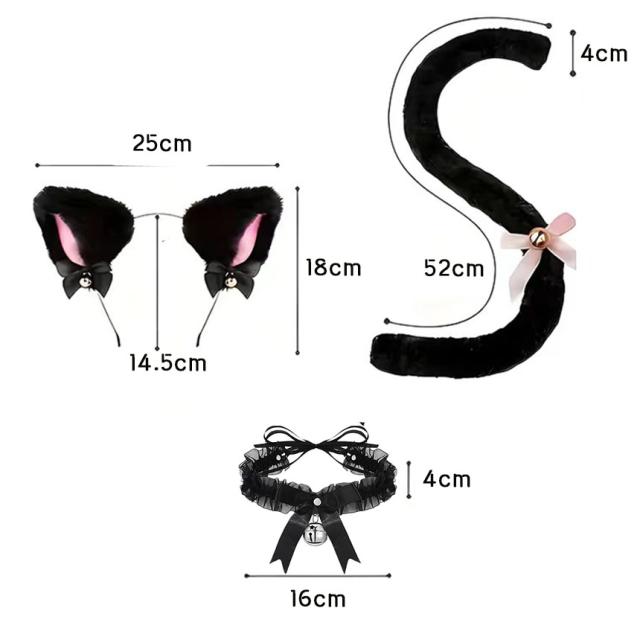 猫耳カチューシャ、チョーカー、しっぽの便利な3点セットで、誰でも簡単に仮装ができます。