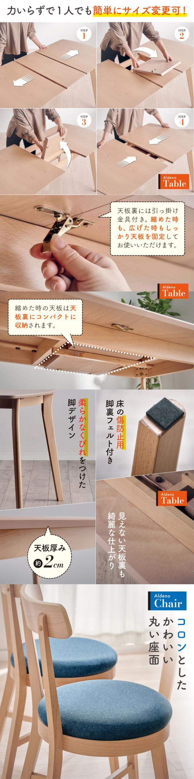 ダイニングテーブルセット 4人掛け 北欧風ダイニング 5点セット Aldeno(アルデーノ) 6色対応 ダイニングテーブル 長方形 幅150cm 伸長式 ダイニングチェア 4脚 食卓椅子 デスクチェア 同色 天然木 ナチュラル おしゃれ