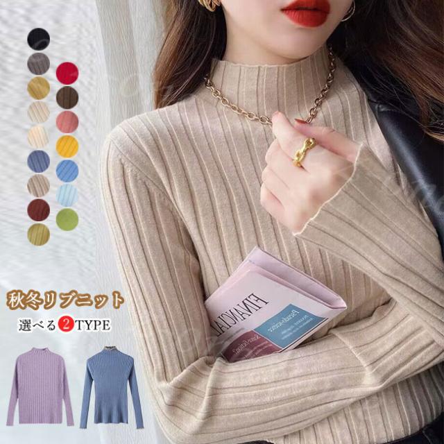 【1点1,150円!2点購入&クーポンで】ハイネックニット ニットセーター 冬新作 送料無料 長袖 レディース 冬冬新作 2type トップス リブニット 防寒 薄手 無地 着やせ 重ね ファッション 女性 秋冬 伸縮性 ホワイトデー 卒業式