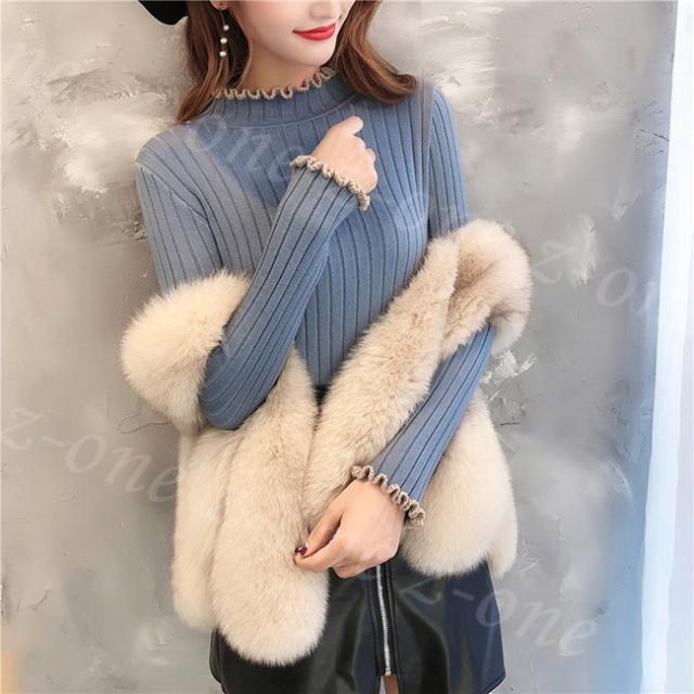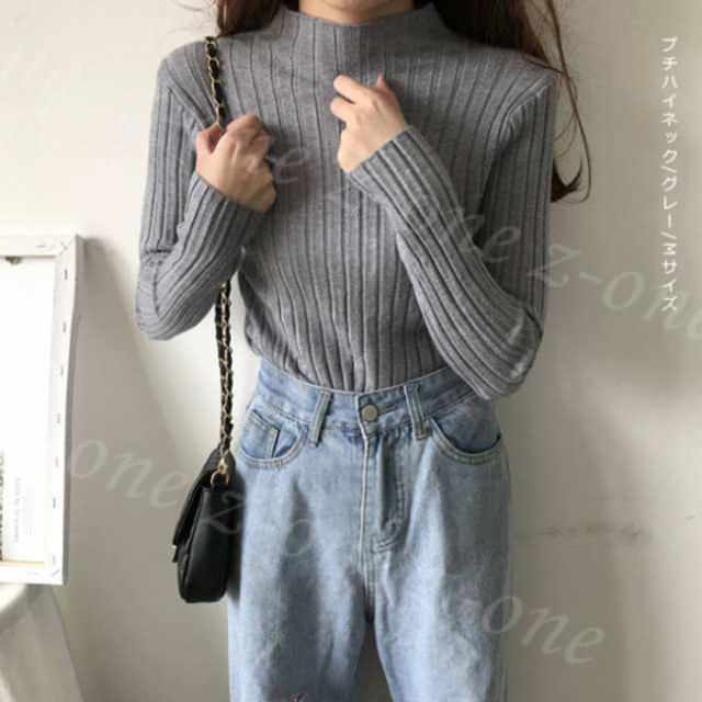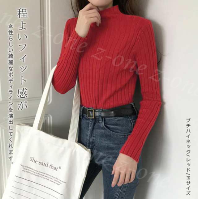 着回しのきくリブハイネックニットセーター。