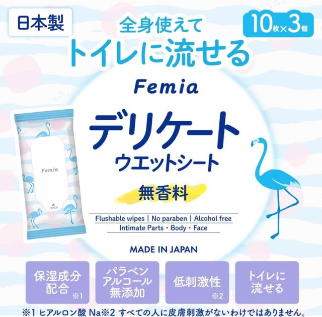 女性用 デリケートゾーン ウェットシート フェムウエット 無香料(10枚×3個)[ランジェリー洗剤・ビデ]