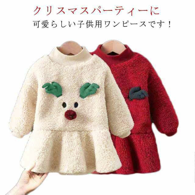 ワンピース クリスマス衣装 女の子 ボア ワンピース キッズ コスプレ コスチューム 子供ドレス コスプレ衣装 フレア もこもこ 子供服 長袖 トナカイ 仮装 子ども クリスマス衣装 可愛い 80 90 100 110 120 130
