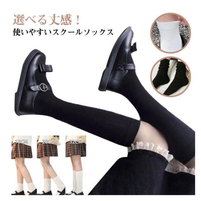 スクールソックス 靴下 ハイソックス 15cm 20cm 32cm 3足セット 無地 シンプル レディース 女の子 蒸れない 通気性 ソックス 中学生 高校生 大人 女性 ストレッチ ホワイト ブラック 通勤 通学 3足組 送料無料