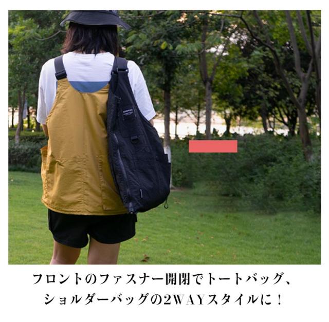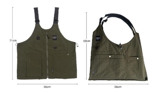 | カジュアルウェアの重ね着に1着あると重宝する多機能ベスト! 大人カジュアルを楽しめて、機能的でお洒落を叶えます。 フロントのファスナー開閉でトートバッグ、ショルダーバッグの2WAYスタイルに! ベストとして着たとき、バッグとして持ったとき、どちらも違和感がないのがこのバッグの秀逸なところ。 外側・内側にポケットがついているので使いやすさも抜群! Tシャツ一枚のコーデにもこのバッグを取り入れれば、アクセントになってくれることは間違いありません。 | |