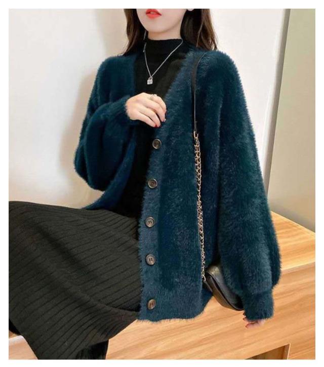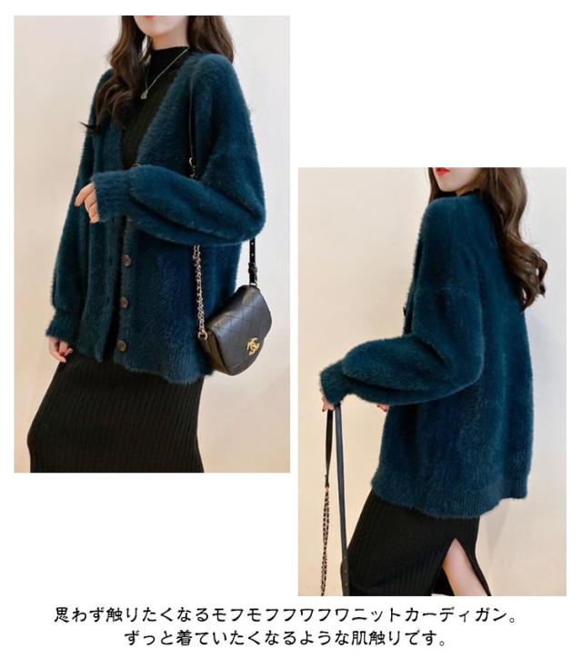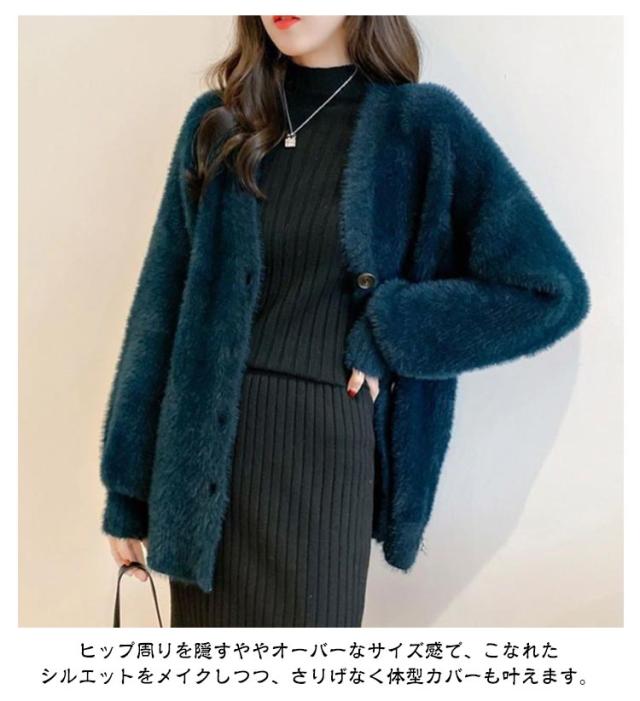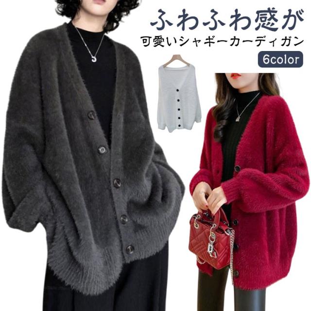 Vネック シャギーニット カーディガン ジャケット トップス ニットコート ゆるニット シャギーニット フェザーカーディガン ニットカーデ 羽織り 体型カバー あったか ふわふわ ニット 防寒 秋 冬 春
