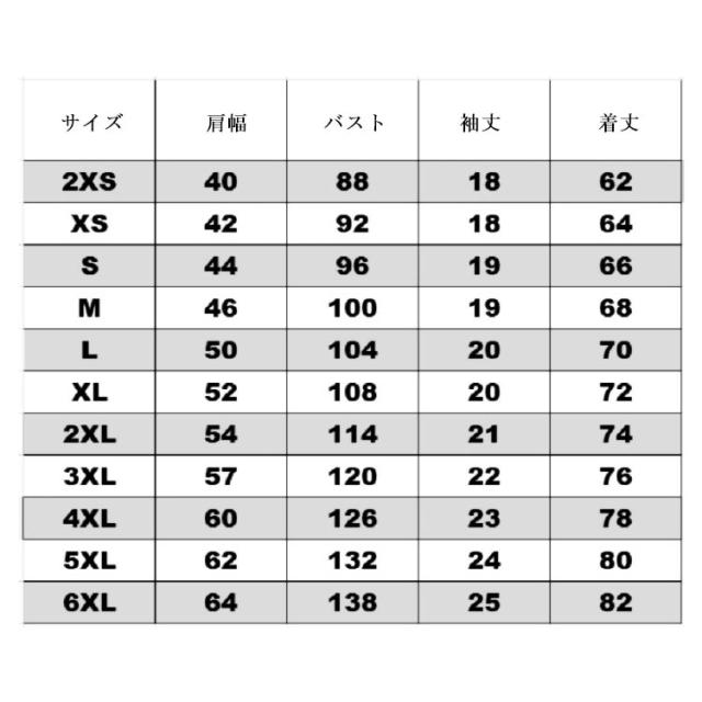 | サイズ | 2XS XS S M L XL 2XL 3XL 4XL 5XL 6XL |