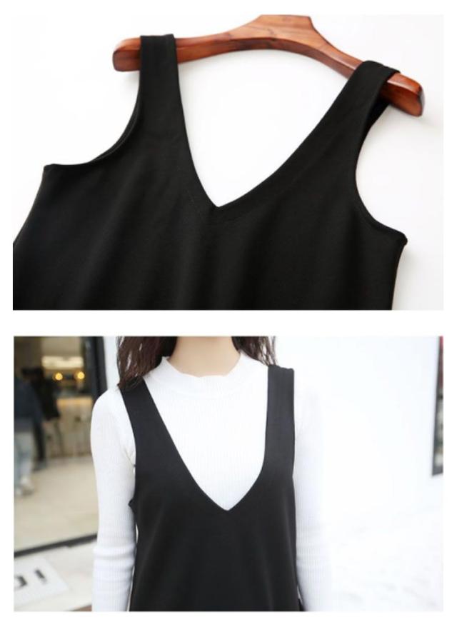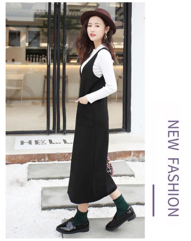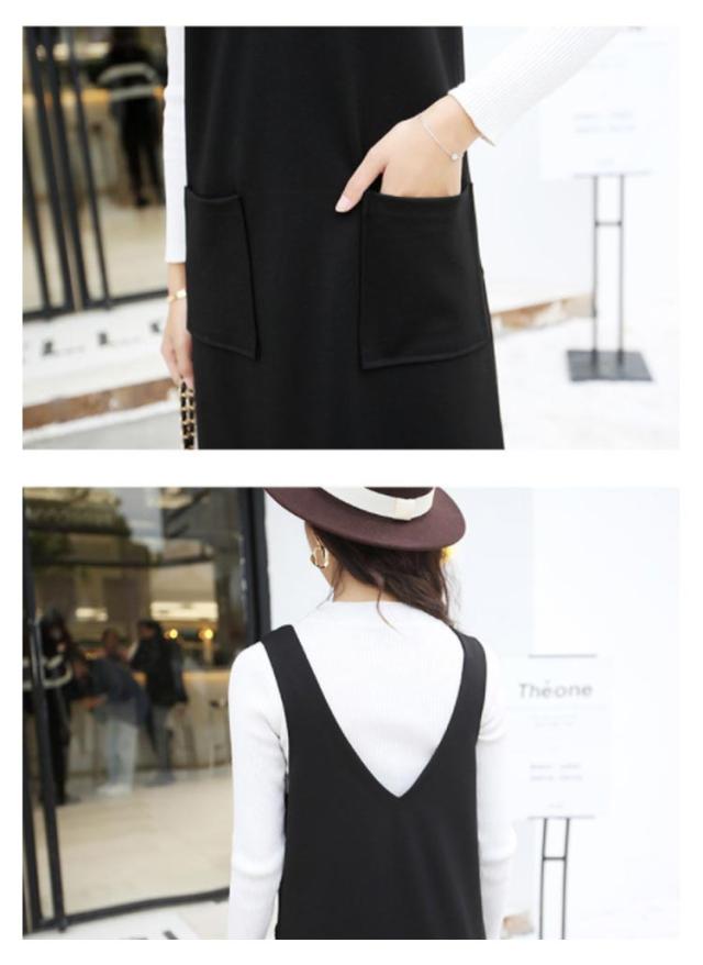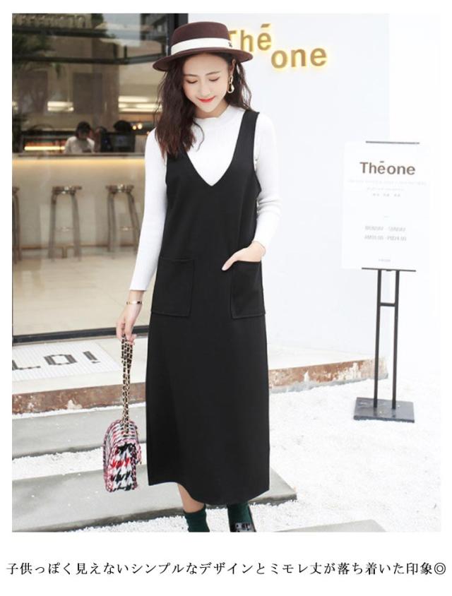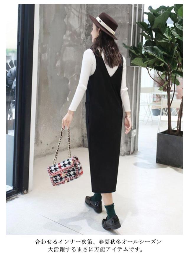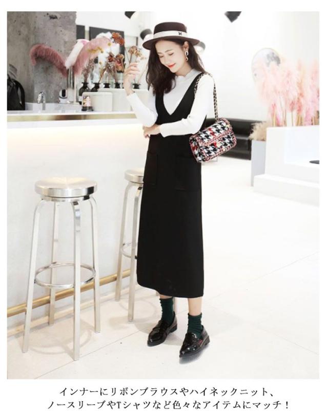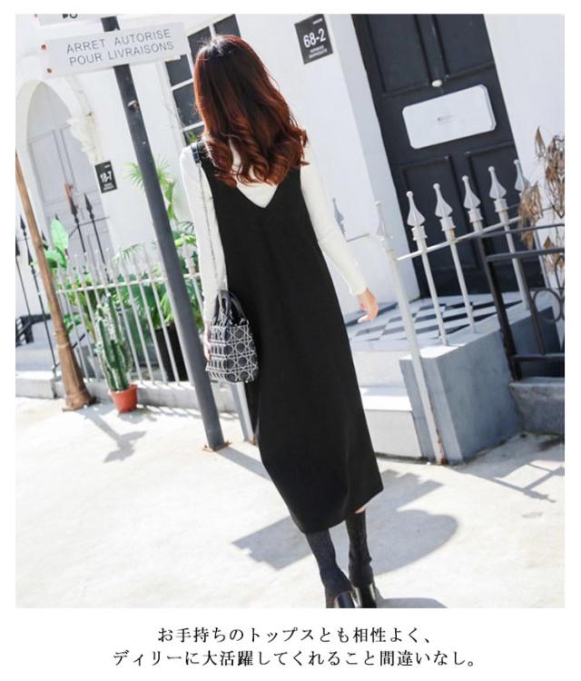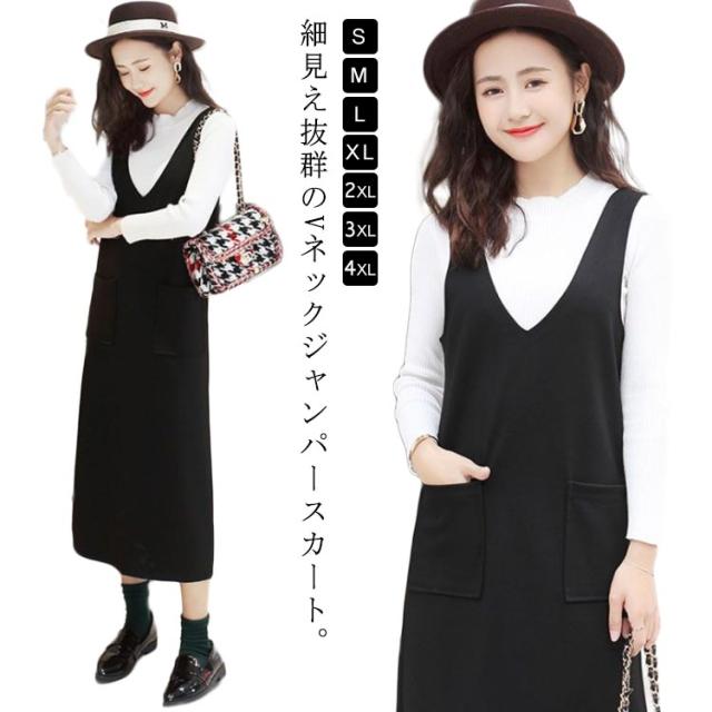| 細見え抜群のVネックジャンパースカート。 インナーにリボンブラウスやハイネックニット、ノースリーブやTシャツなど色々なアイテムにマッチ! 合わせるインナー次第、春夏秋冬オールシーズン大活躍するまさに万能アイテムです。 子供っぽく見えないシンプルなデザインとミモレ丈が落ち着いた印象◎ お手持ちのトップスとも相性よく、ディリーに大活躍してくれること間違いなし。 | |