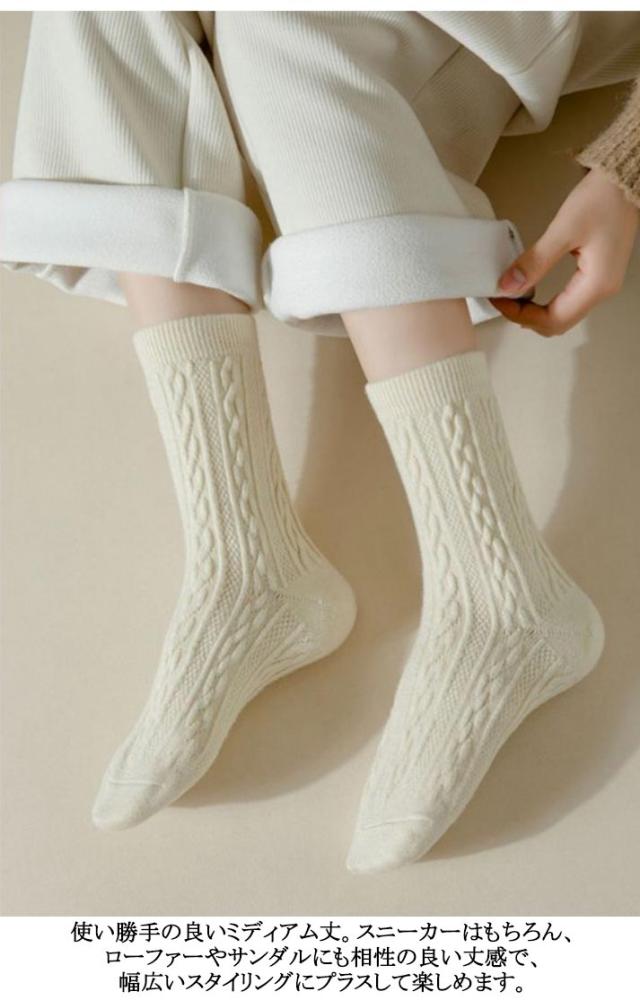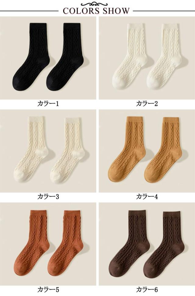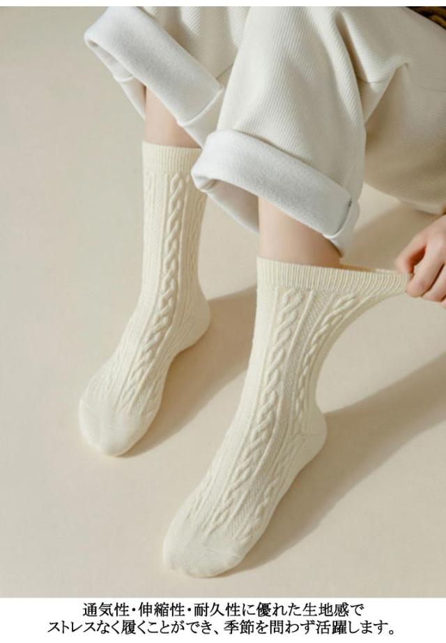 ソックス 送料無料 おしゃれ 靴下 送料無料 ケーブル編み レディース クルーソックス くつした 秋冬カラー 厚手 無地 かわいい ミドル丈 ショートソックス シンプル 女性 通勤