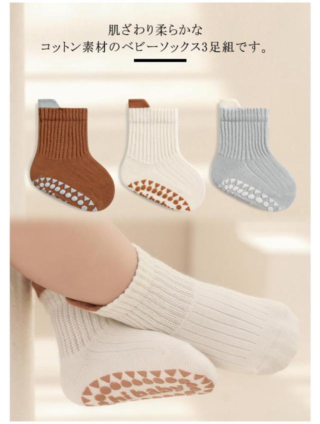| 【3足セット】【綿】【滑り止め付き】 肌ざわり柔らかなコットン素材のベビーソックス3足組です。 ゴム跡がつきにくいデザインで、お子様の足元を優しく包み込むアイテムです。 滑り止めが付いているため、赤ちゃんが動き回っても安心。 | |