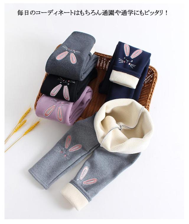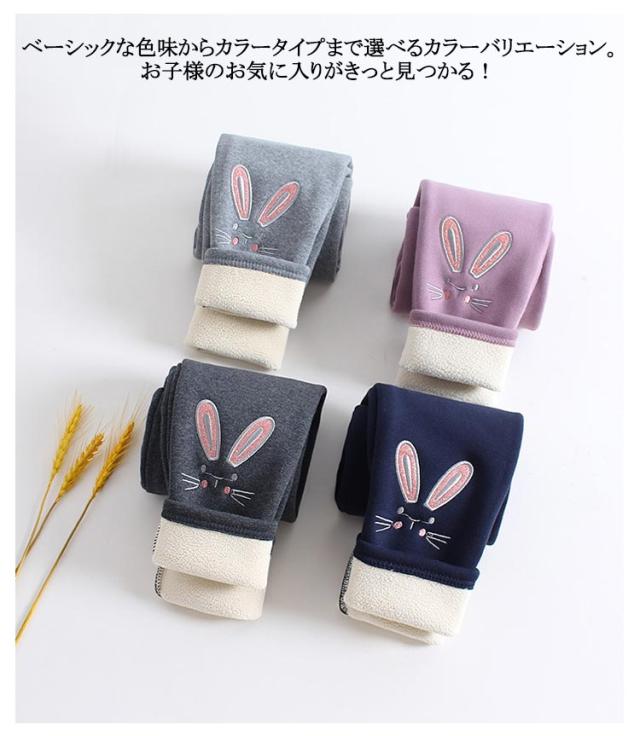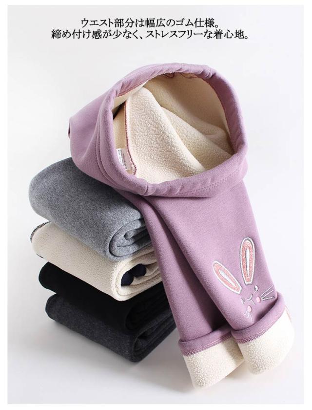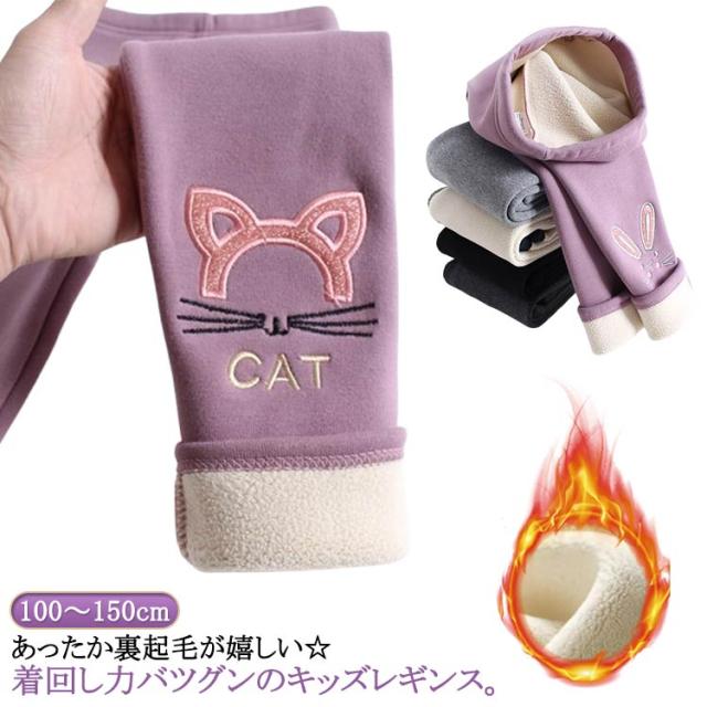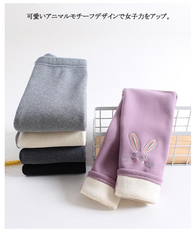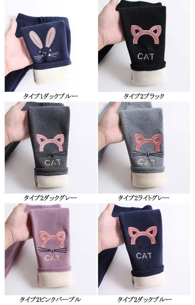 裏ボア 長ズボン レギンス ロングパンツ 裏起毛 ズボン 送料無料 レギパン 子供服 キッズ レギンスパンツ 送料無料 ハイウエスト 刺繍 ネコ ウサギ 女の子 幼児 ガールズ 子ども 防寒 保温 シンプル 暖かい あったか かわいい
