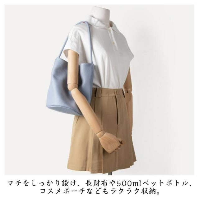 | すっきりフォルムで持ちやすいスタイリッシュなデザインの縦型トートバッグ。 流れるようなフォルムとゆったり入る収納が特徴で、日常の必需品をすっきりと収めることができます。 A4サイズ対応、マチ広で収納量抜群なのでビジネスシーンで活躍! ワンハンドルの仕様が、ハンドル持ちにも、肩掛けにも、スタイルに合わせてお持ちいただけます。 スタイリッシュなフォルムで様々なコーデに合わせやすいシンプルデザイン。 大人のミニバッグはコンパクトなのに大容量がマスト。 通勤通学でも使いやすい大人可愛いカラーが豊富☆お気に入りがきっと見つかる! | |