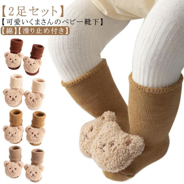 秋 ソックス 冬 靴下 2足セット 可愛い 出産祝い アニマル コットン 綿 ソックス 子供 キッズソックス くま クマ 幼児 ベビー 柔らか 新生児 ギフト 滑り止め 男の子 女の子 赤ちゃん 伸縮性 かわいい 春 保育園 幼稚園