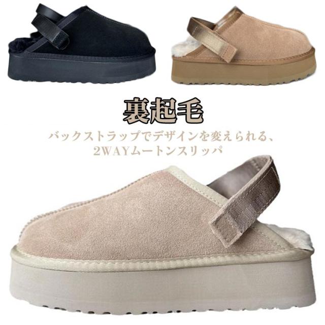 2way ファーサンダル レディース 裏起毛 厚底 ふわふわ 外履き つっかけ おしゃれ あったか 可愛い フラットシューズ ムートンスリッパ 防寒 秋