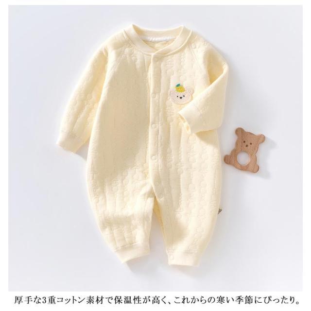 厚手 長袖 おしゃれ ロンパース 秋 スナップボタン 男の子 カバーオール 春 赤ちゃん 桃 新生児服 66 あったか 綿 前開き 女の子 くま ロンパース 冬 アニマル柄 3重コットン かわいい 59 ウサギ 73 80 90 新生児 幼児 出産祝い ギフト プレゼント