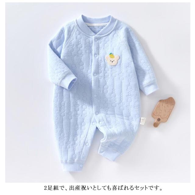 | 【厚手ロンパース】【3重コットン】【前開き】 アニマル柄のかわいいロンパース。 厚手な3重コットン素材で保温性が高く、これからの寒い季節にぴったり。 2足組で、出産祝いとしても喜ばれるセットです。 | |