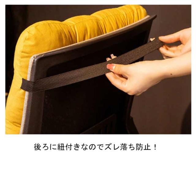 | 快適な座り心地、ロングシーズンで大活躍するチェアクッション 柔らかなタッチのあったか生地に柔らかな中綿をたっぷりと詰め、冷えやすい腰周りをあたたかく包んでくれます。 座面と背面の立体クッションが、ソファのような座り心地を実現。 後ろに紐付きなのでズレ落ち防止! 選べる2サイズ、様々なサイズの椅子に対応可能です。 | |