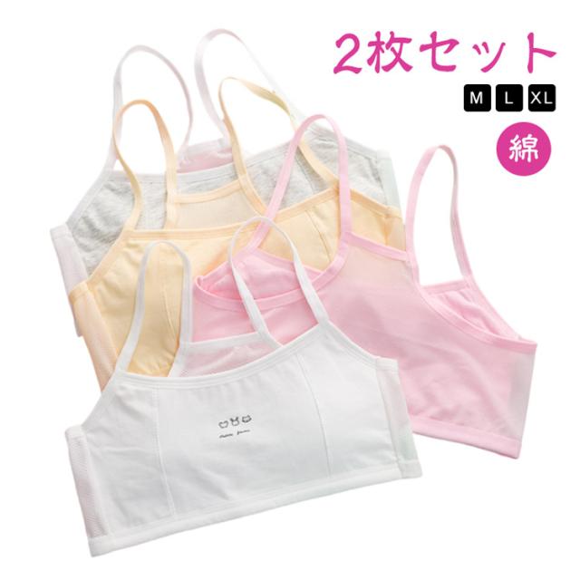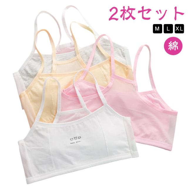 小学生 XL かわいい ファーストブラ M L 【2枚セット】キッズ ハーフトップ 【2枚セット】キッズ 子供 スポブラ 中学生 女子 ブラジャー ノンワイヤー インナー 肌着 ジュニアブラ スポーツブラ 下着 綿 コットン 女の子