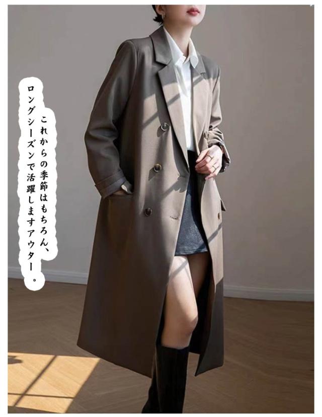 ダブル ジャケット テーラードジャケット スーツ ダブル レディース 春秋冬 ビジネス アウター トレンチコート ロングコート ダブルジャケット コート フォーマル 通勤 オフィス カジュアル 無地 スリム 着痩せ 上品 シンプル