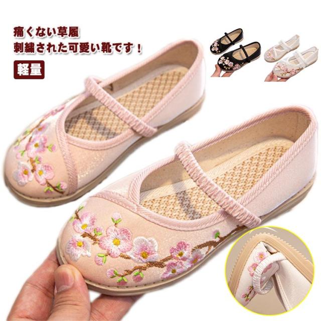 | 痛くない草履 刺繍された可愛い靴です! 花の刺繍がされていて、着物ともなじみやすく、非常に軽くて柔らかい靴ですので、神社など段差の多い場所や砂利道もへっちゃらで機嫌よく歩いてくれます。 民族風の靴、民族風の古風漢服にピッタリです! 15.1-22.3cmまでのサイズがあります。お好きなカラーをご自由にお選びください。 演出、イベント、写真記念、お祭、コスプレ、日常など大活躍です! | |