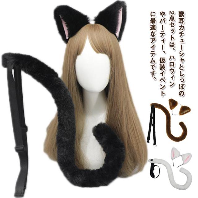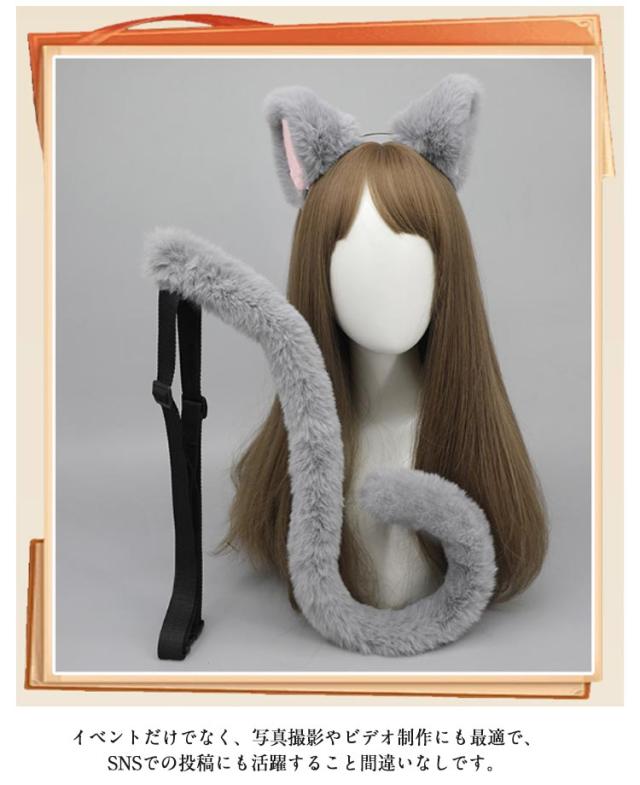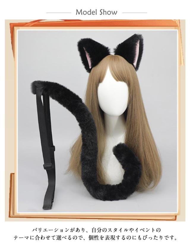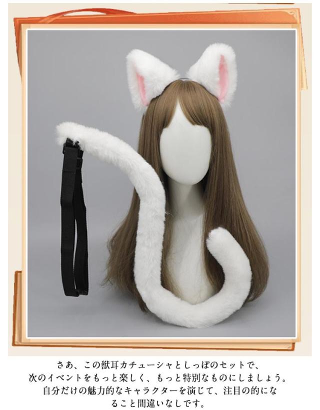 しっぽ 2点セット カチューシャ パーティー ネコミミ ネコ 獣耳 小物 道具 衣装 LOLITA 仮装 ハロウィン コスプレ 猫 猫耳 尻尾 セット かわいい ハロウィン コスチューム 小物 道具 衣装