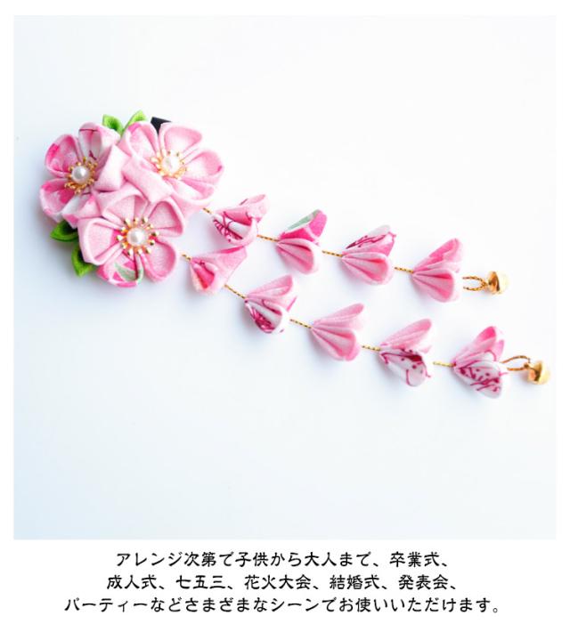 | 【髪飾り】【子供〜大人】【全30種類】 アレンジ次第で子供から大人まで、卒業式、成人式、七五三、花火大会、結婚式、発表会、パーティーなどさまざまなシーンでお使いいただけます。 可憐な花びら飾りには、揺れるたびさりげなく鳴るかわいらしい鈴付き。 歩くたびに下がり飾りが揺れて、とってもキュート! 軽やかな鈴の音で、晴れ晴れとした気分に♪ 和装(振袖・着物・浴衣・袴など)に合わせてご利用いただけます。 大切な方への贈り物にも最適です! | |