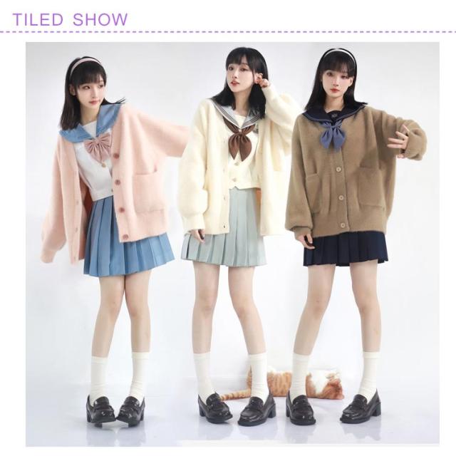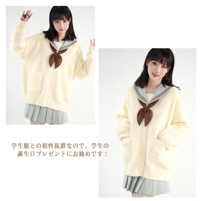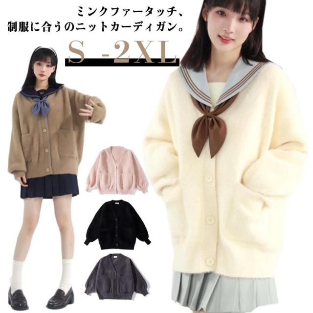ミンクファータッチ カーディガン ニットカーディガン ニット カーディガン 制服 高校生 中学生 もこもこ バルーンスリーブ スクールセーター JK 韓国ファッション カジュアル 秋冬 S M L XL 2XL