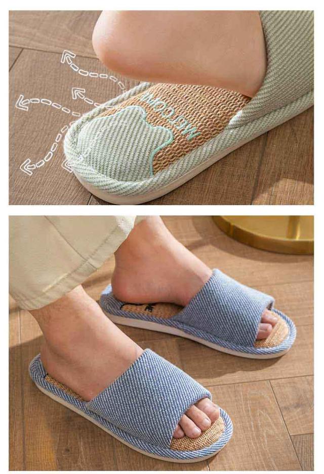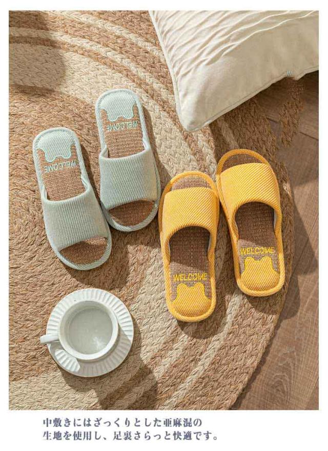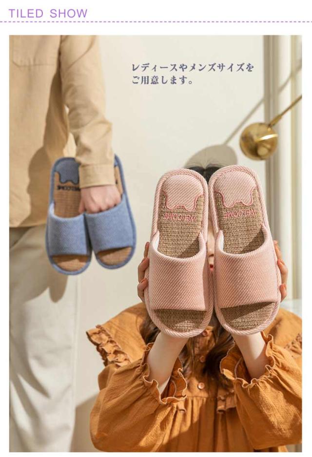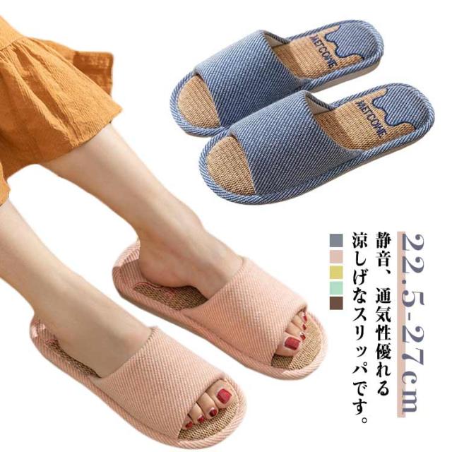 静音 リネン スリッパ 麻 室内 ルームシューズ 夏用 コンフォートスリッパ 前あき レディース メンズ 軽量 オールシーズン 来客用 ルームスリッパ 室内スリッパ 部屋履き 涼しい 春 夏 22.5-27cm