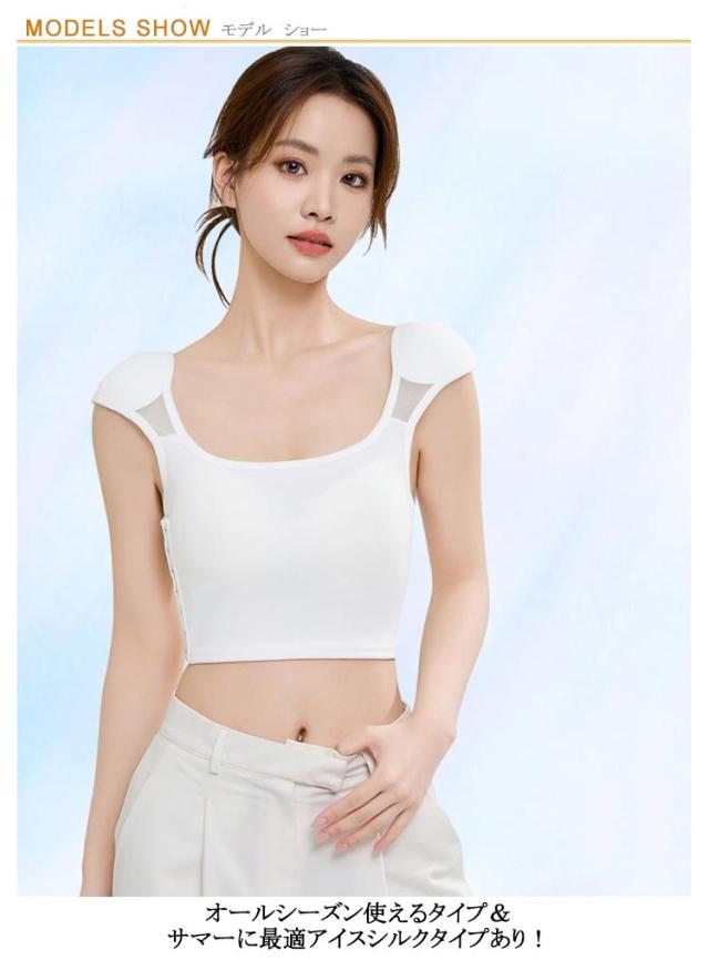 | 2枚入り ずれにくい、肩のラインを綺麗に見せてくれる肩パット付きのブラトップです。 オールシーズン使えるタイプ&サマーに最適アイスシルクタイプあり! 肩があるとないとは洋服の着映えが全く違い、 着るだけで肩のラインを綺麗に整えてくれます。 低いスクエアネックで色んな洋服対応! | |