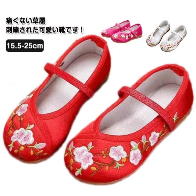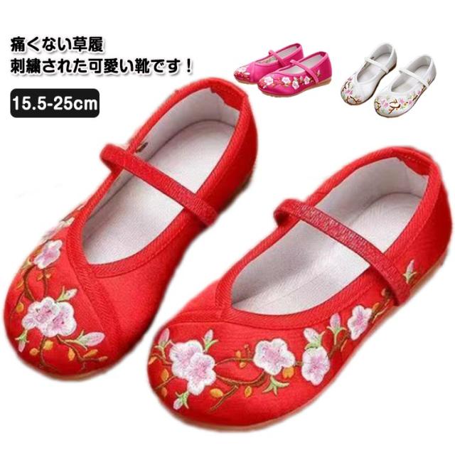 靴 和柄の靴 歩きやすい ストラッブ 子供靴 和装 キッズ 草履 結婚式 大人 赤 女の子 ピンク ホワイト 歩きやすい 草履 刺繍 子供靴 シューズ 痛くない草履 キッズ 子供 こども チャイナ靴 バレエ靴 発表会 七五三 赤 花柄 刺繍 子供靴