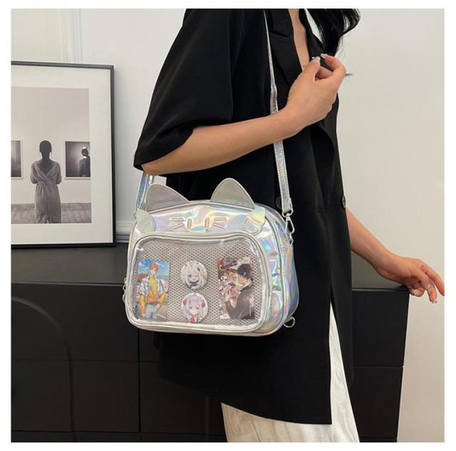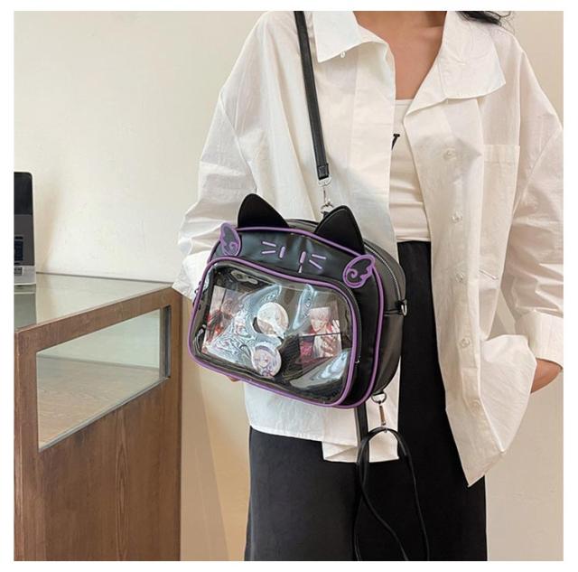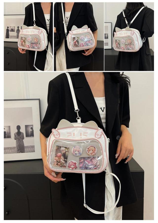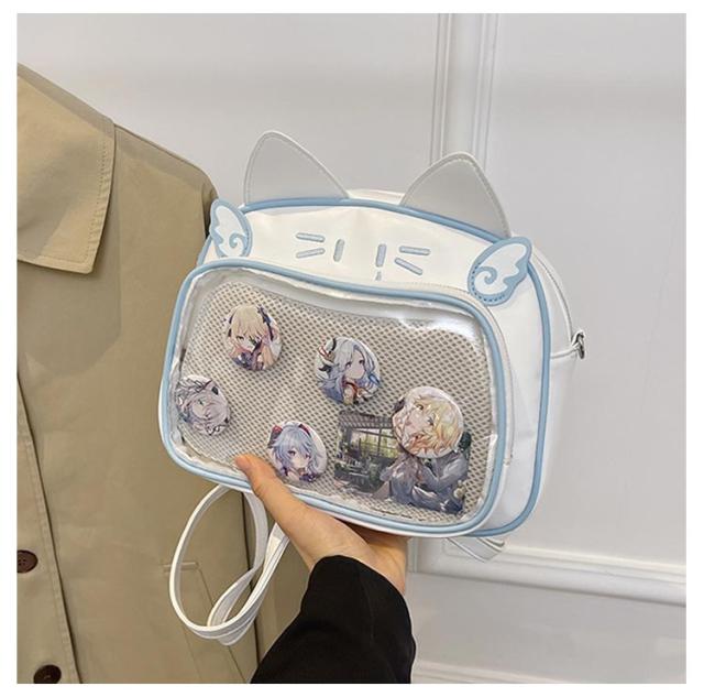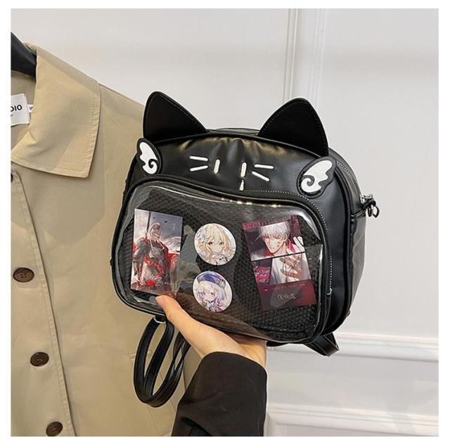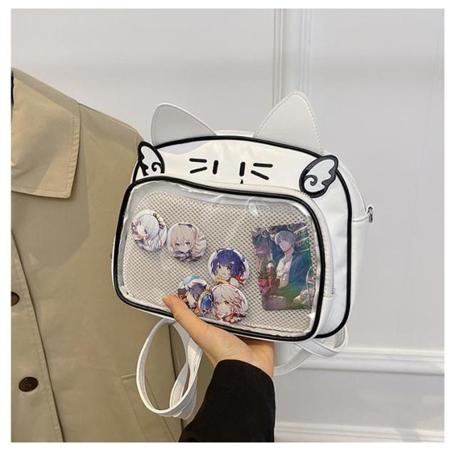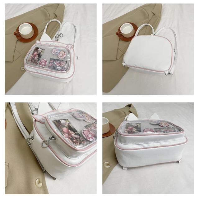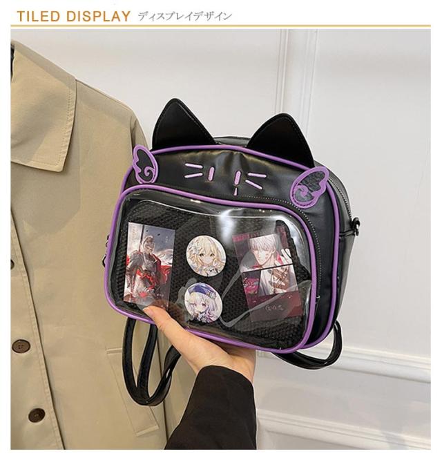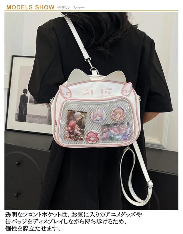 痛バッグ ぬいぐるみ リュック 痛バッグ リュック 3way 痛バ 大容量 鞄 ショルダーバッグ レザー調 猫耳 可愛い ガールズ リュック 缶バッチ レディース メンズ 男女兼用 女子 男子 ビニールバッグ ヲタバ 痛バ クリアバッグ 透明バッグ 見せバッグ オタクバッグ