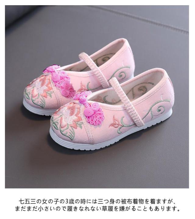 七五三 靴 草履 赤 キッズ 歩きやすい 痛くない草履 草履 子供靴 花の刺繍 赤 ピンク 歩きやすい 和柄の靴 和装 15-22.3cm 送料無料