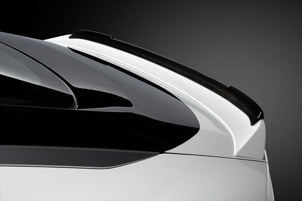 純正リアスポイラーに取り付けるトランクスポイラーは、デザインのアクセントになるだけでなく、ダウンフォースの調整を行い前後の空力バランスをさらに適正化します。