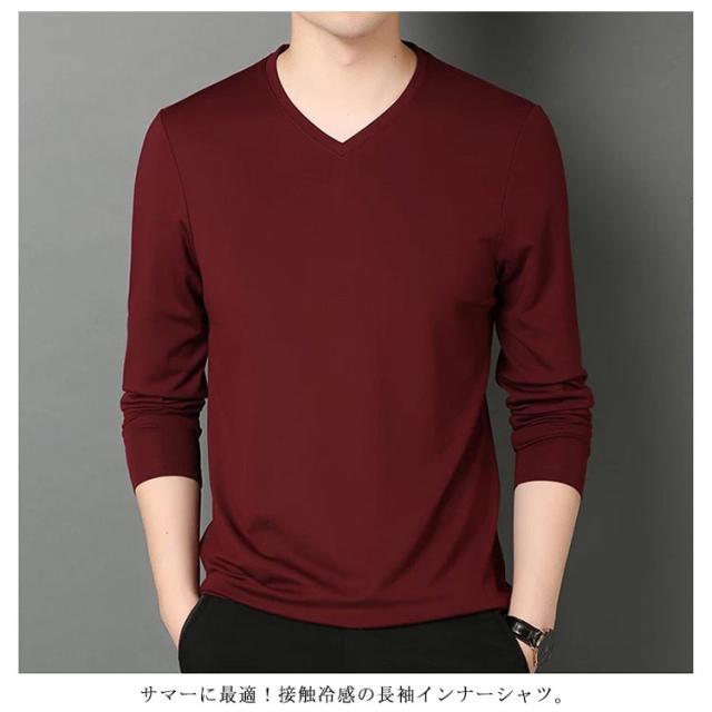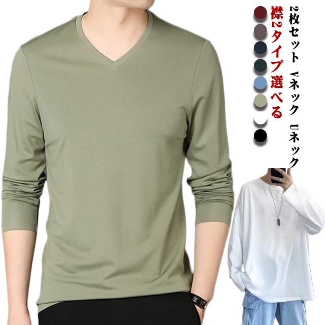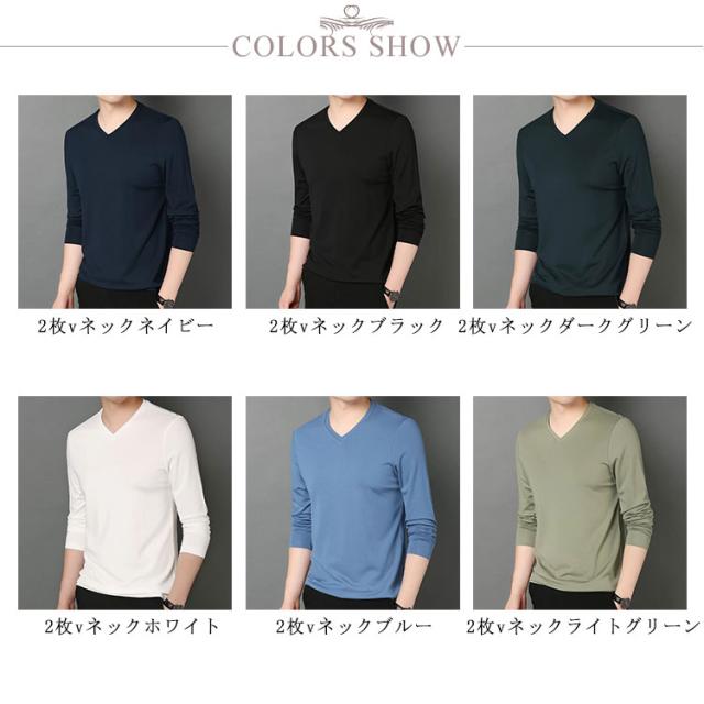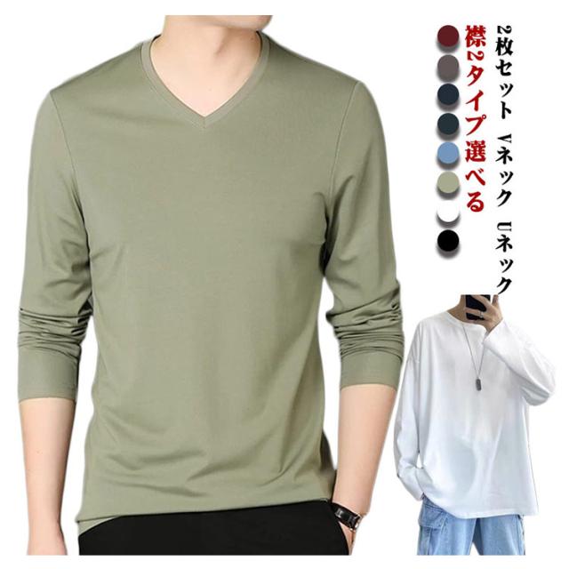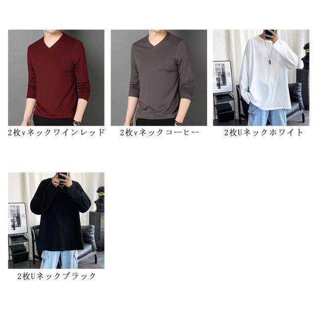 Vネック 無地 長袖 インナーシャツ 【2枚セット】襟2タイプ選べる Vネック 春夏秋冬 アンダーシャツ インナーウェア 丸首 速乾 スポーツ 通気 メンズ 吸汗 バイク Uネック ストレッチ 作業 トレーニングウェア ゴルフ 野球 消臭 大きいサイズ 【2枚セット】