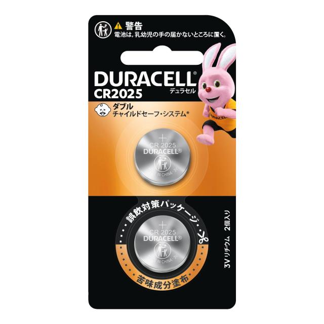 【デュラセル】CR2025 リチウムコイン電池 2個入り 保存期間10年 防災備蓄用もウサギの電池 コイン/ボタン/特殊 誤飲防止 苦み成分塗布