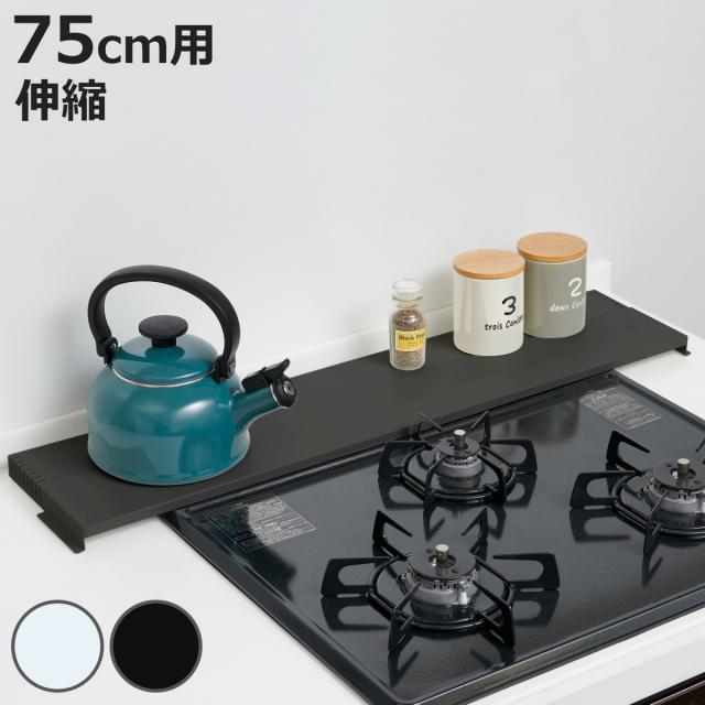排気口カバー 奥行き調節タイプ 75cmコンロ用 ( 75cm 排気口用カバー 排気口ガード スチール フラット 奥行伸縮 一時置き ビルトインコンロ コンロカバー コンロ奥カバー グリルカバー 排気口 カバー ガード 汚れ防止 )