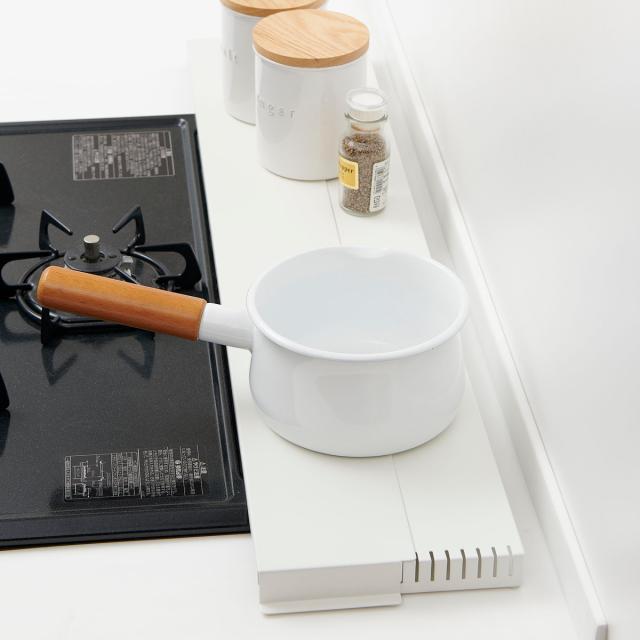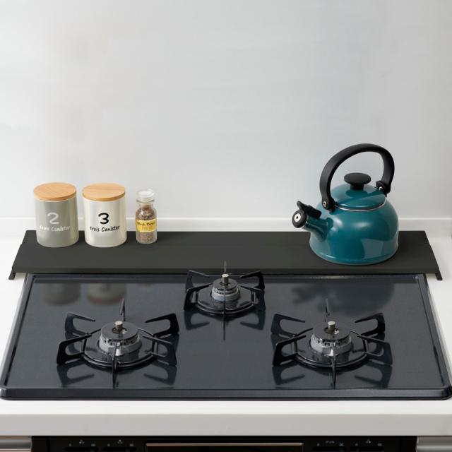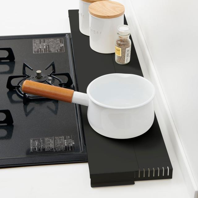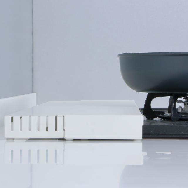 耐荷重が約3kgあるので、調味料や鍋のフタなど細かい物の一時置きとしても便利にお使いいただけます。調理中のフライパンや鍋なども置けるのでコンロを広く使えて便利です。